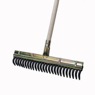 PRODUCT: RUBBER RAKE WITH WOODEN HANDLE PRODUCT CODE: RBRRAKE DESCRIPTION: GALVANISED STEEL HEAD, 25 FINGER.